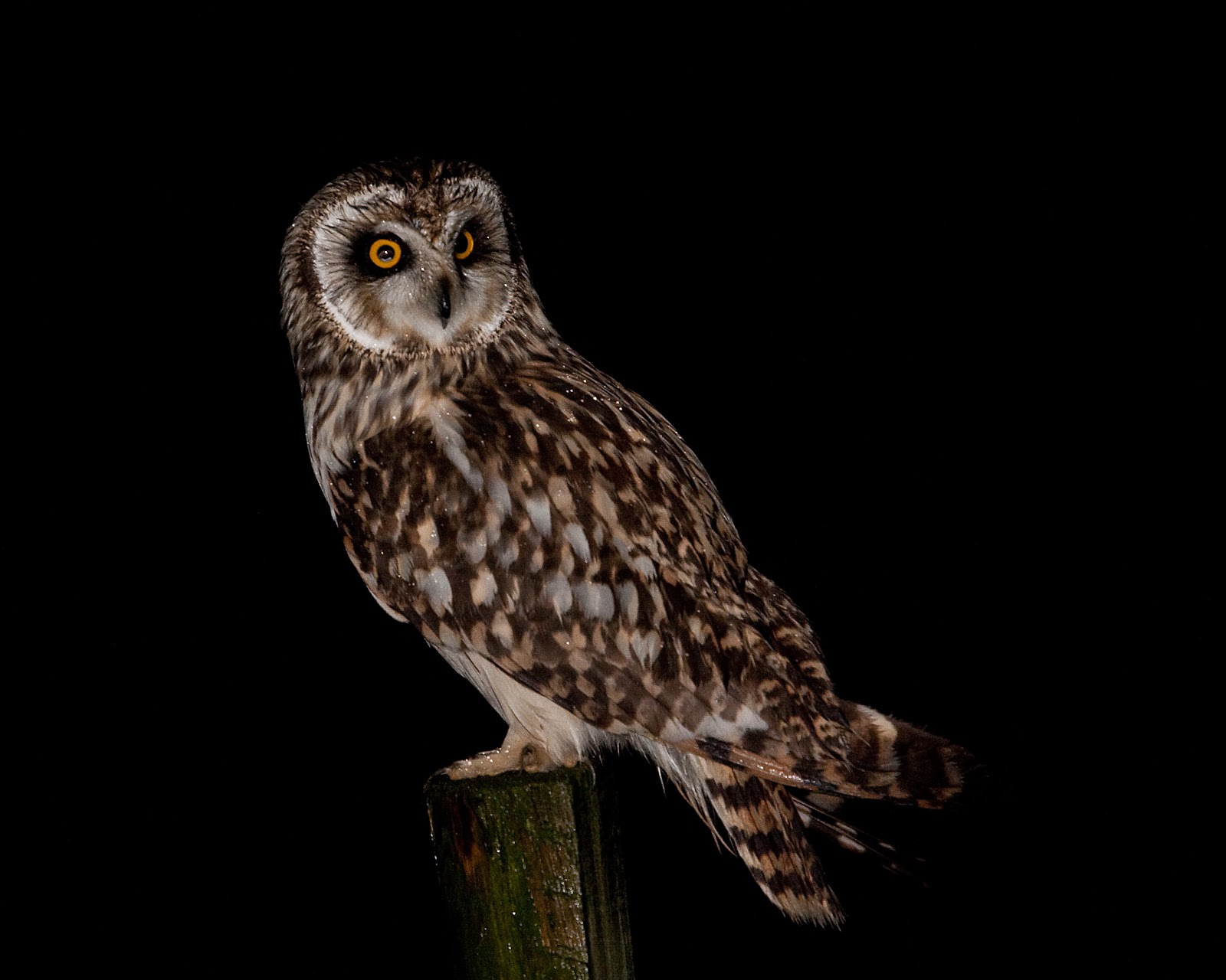 we had over a hour with up to four different barn owls,but the icing on the cake was just about to happen,i notice a dark bird sitting on the post,long eared i said to marc as we got closer marc called short eared,had to be quick to gain some shots as they never stay still that long